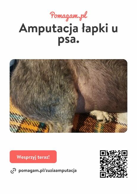 Zwracam się z prośbą o pomoc w opłaceniu amputacji łapki u psa. Link do zbiórki : ...